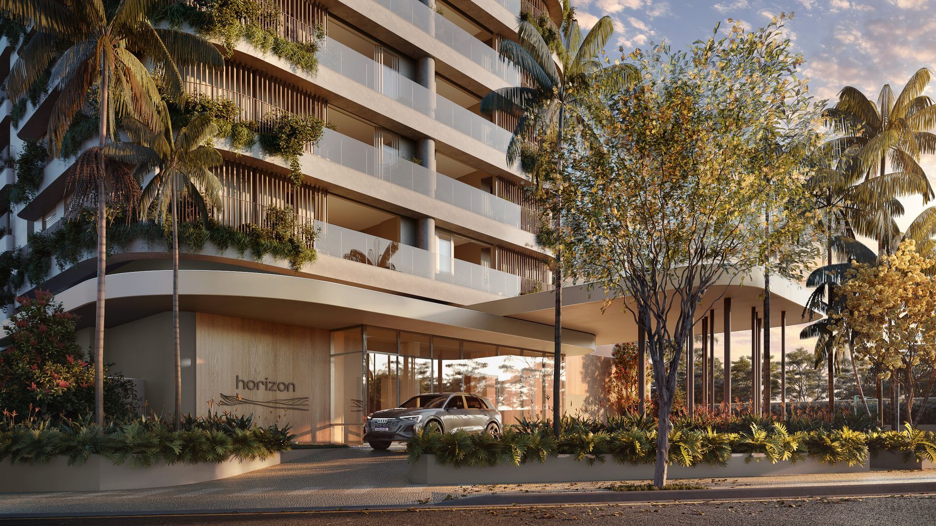 "Horizon representa uma possibilidade de olhar para o futuro sem perder contato o que temos de melhor no presente. Nossas cidades são carentes de áreas verdes e a maioria das edificações exploram ângulos retos, quinas. No Horizon trabalhamos a curva, o orgânico, a integração da arquitetura com o paisagismo. Retiramos as janelas dos quartos, transformando-as em portas. Essas grandes aberturas se abrem para o horizonte e trazem o céu e o paisagismo das floreiras para dentro das casas, criando um cenário incrível e exclusivo. O Horizon é uma gentileza urbana, algo bonito de contemplar que convida ao bem-estar".